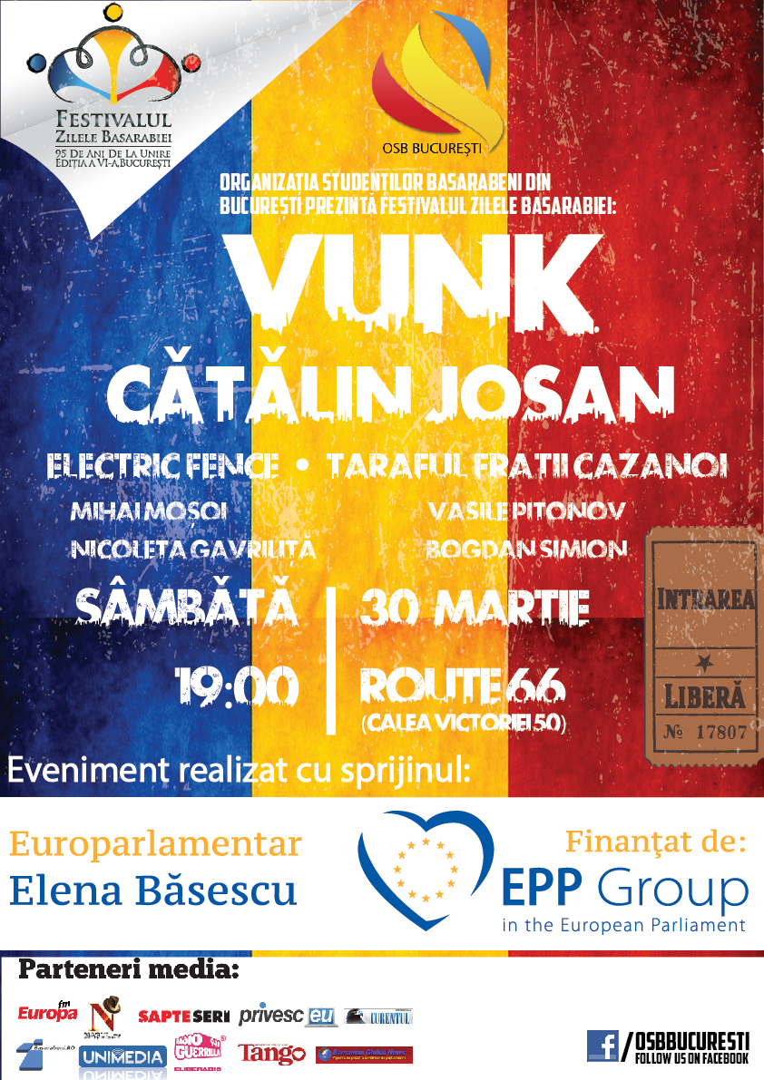Pe final am dori să ne disociem public de acţiunile publicaţiilor care au afişat versiuni neoficiale ale afişelor concertului şi care au preluat materiale promoţionale fără acceptul direct al Organizaţiei Studenţilor Basarabeni din Bucureşti. Denunţăm pe această cale acţiunea maliţioasă de eliminare a sponsorului principal EPP Group reprezentat prin doamna europarlamentar Elena Băsescu de pe materialele postate.