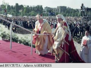 Papa Ioan Paul al II-lea și Patriarhul Teoctist, la București (7 mai 1999)