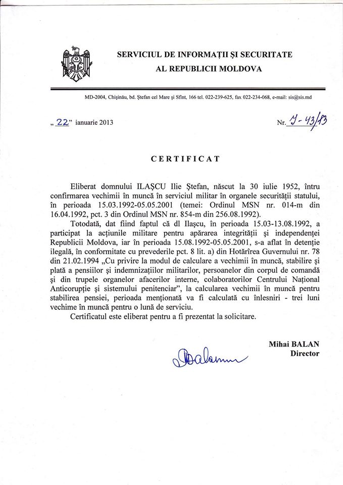 (DOC) Fostul deținut politic a regimului de la Tiraspol, ILIE ILAȘCU, a fost angajat al serviciilor secrete moldovenești