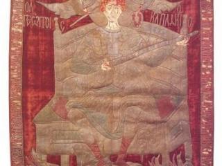Exponatul amintit este o broderie bizantină realizată în secolul al XV-lea care îl înfăţişează pe Sfântul Mare Mucenic Gheorghe, socotit un simbol al biruinţei militare. Iconografia şi încadrarea cronologică a piesei au creat iniţial confuzia că ar fi vorba despre un steag de luptă al voievodului Ştefan cel Mare, dar absenţa stemei Moldovei, caracteristică stindardelor militare, nu susţine ipoteza amintită.